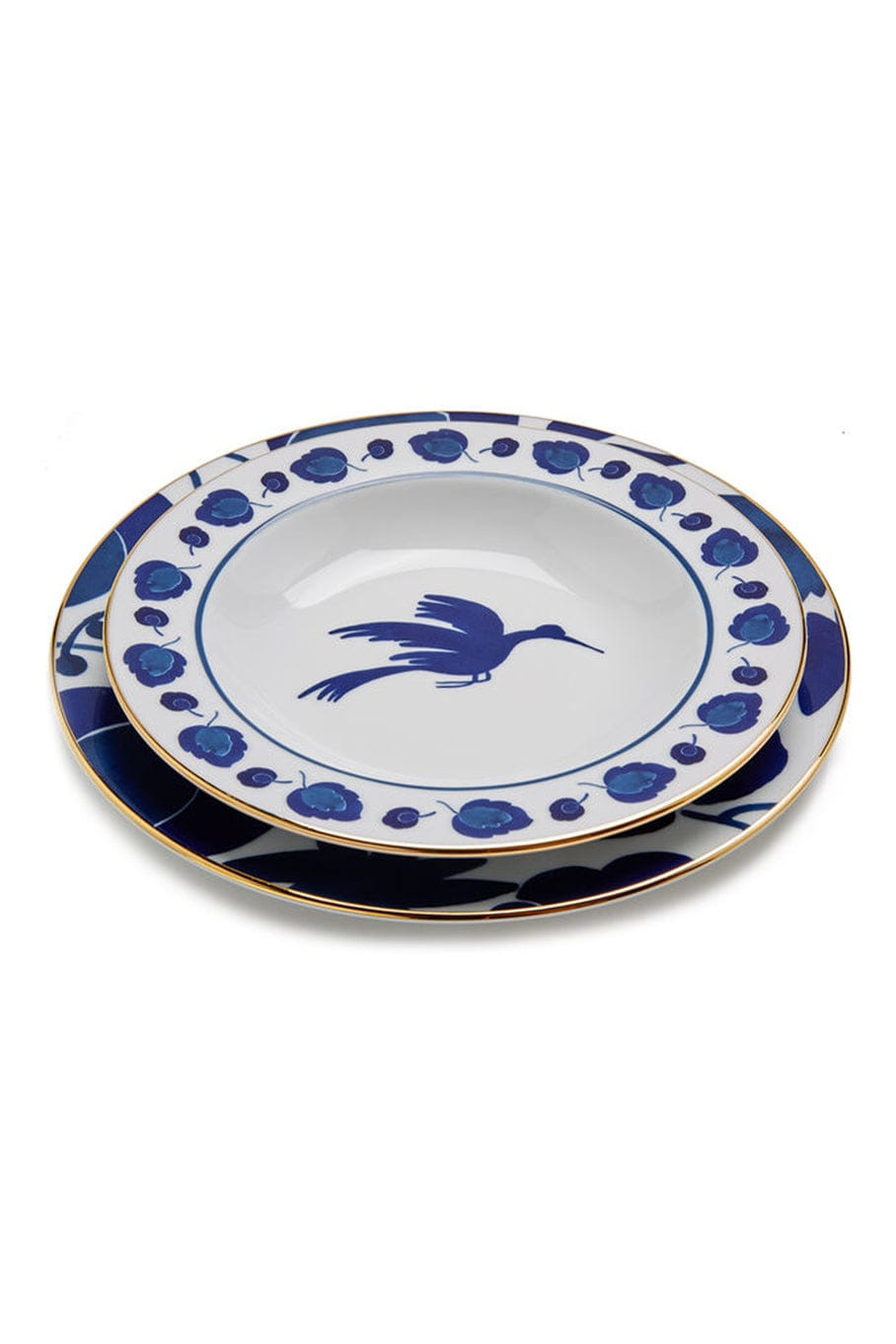 DETAILS AND INSIGHT La DoubleJ set of 2 soup and dinner plates in wildbird blue. Style DIS0026 - CER001 - BIR0001