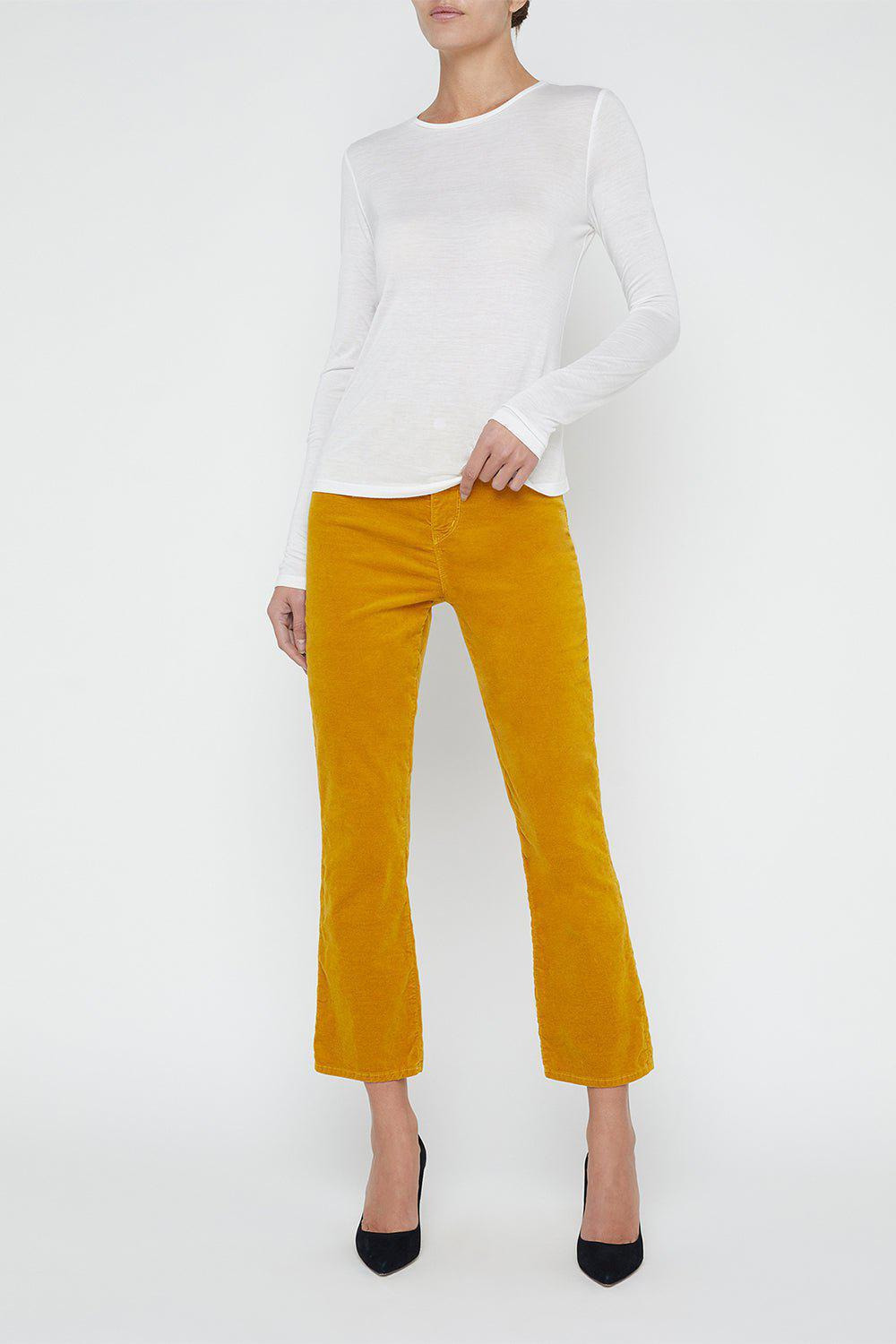DETAILS AND INSIGHT L'Agence ayla tee in white. 90% MICRO MODAL, 10% CASHMERE DRY CLEAN Made in USA Ships by Oct 22 Style 5791MJJ-WHIT