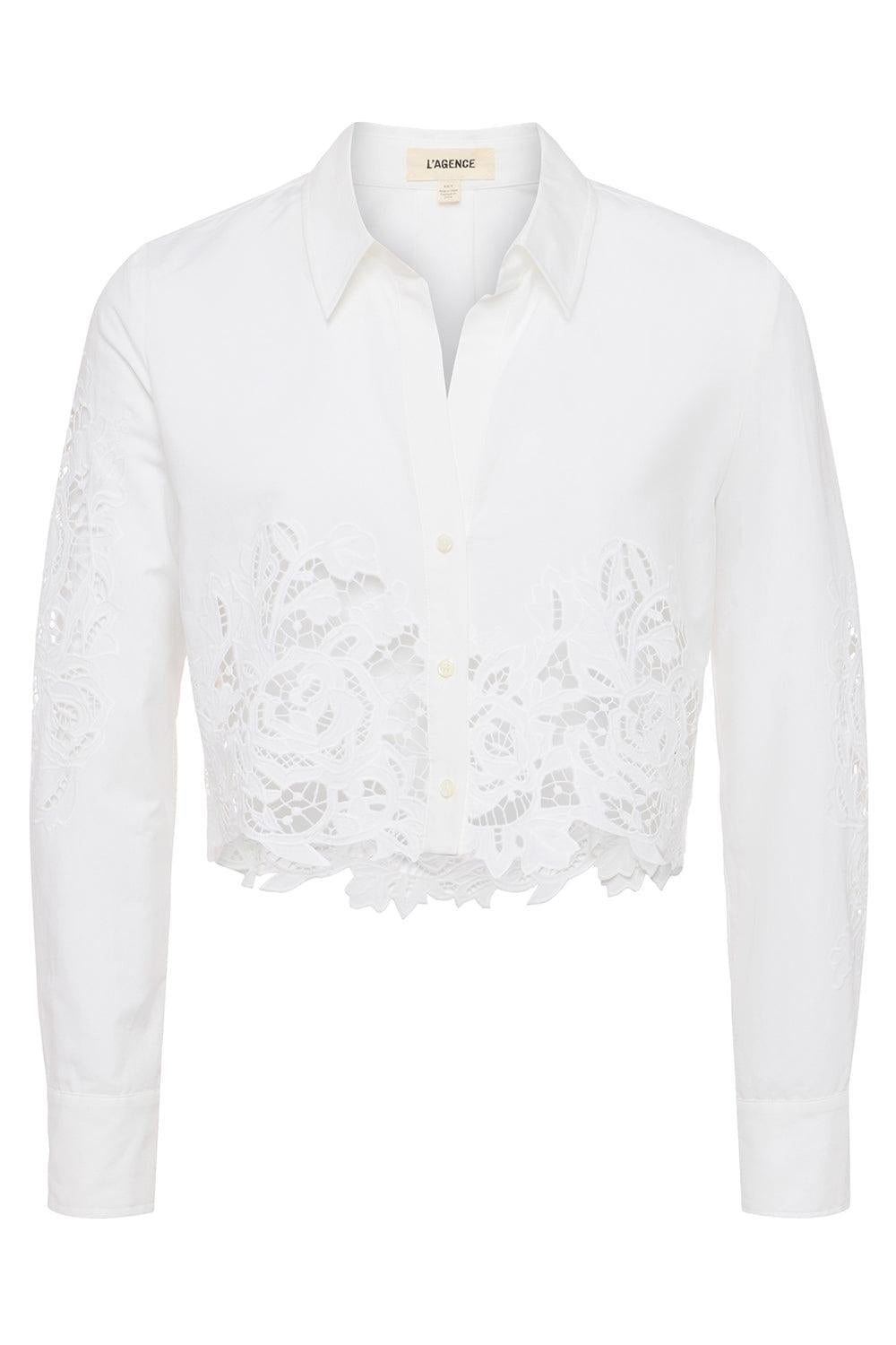 DETAILS AND INSIGHT L'agence seychelle cropped blouse in white. 55% Cotton, 45% Rayon Hand Wash In Cold Water Imported Style 40587REK-WHIT