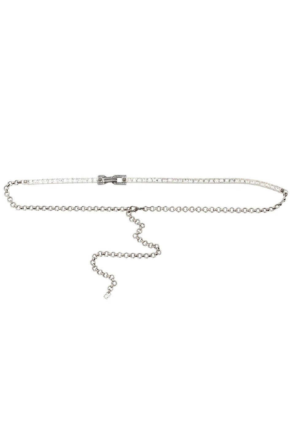 DETAILS AND INSIGHT Chain Belt With Rhinestones 37.25" Medium Length And 0.25" Width 12.5" Gem And Horse Bit Length Lobster Claw Clasp Closure 40% Brass, 40% Glass, 20% Pewter, Made In Italy Available In Crystal Style AWBEPH8P