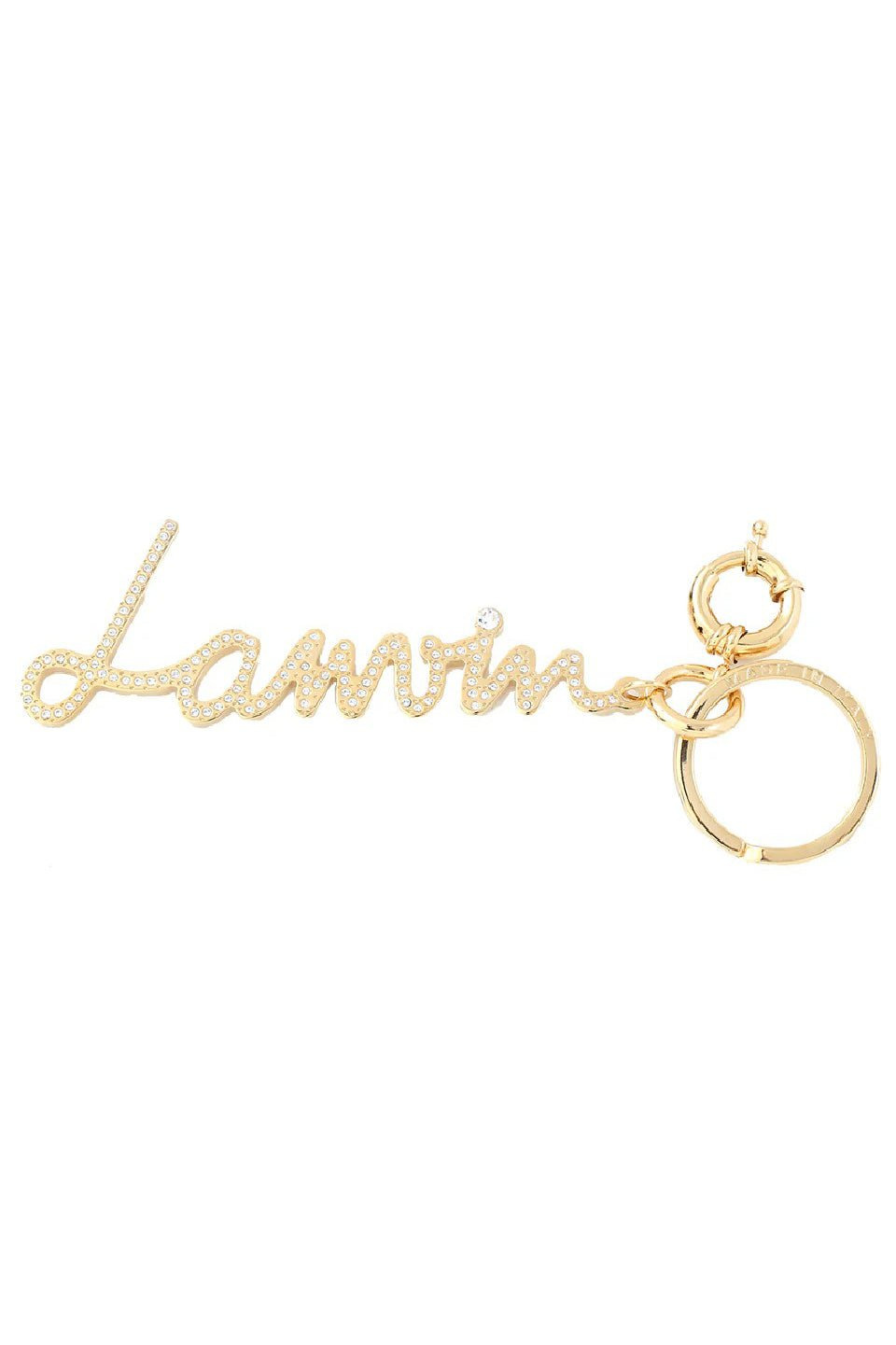 DETAILS AND INSIGHT Lanvin Keychain 5.5" Length And 1.5" Width Keychain And Spring O-Ring Clasp With Rhinestone Detail Made In Italy Available In Gold Style AWSICEP5