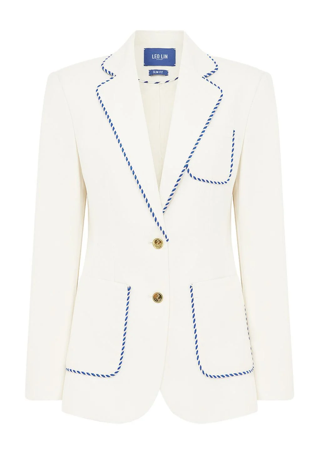 DETAILS AND INSIGHT Leo Lin jillian blazer in vanilla. 50% Wool 50% Polyester / Lining: 100% Polyester Dry Clean Made In China Style LLRE260022-VANILLA