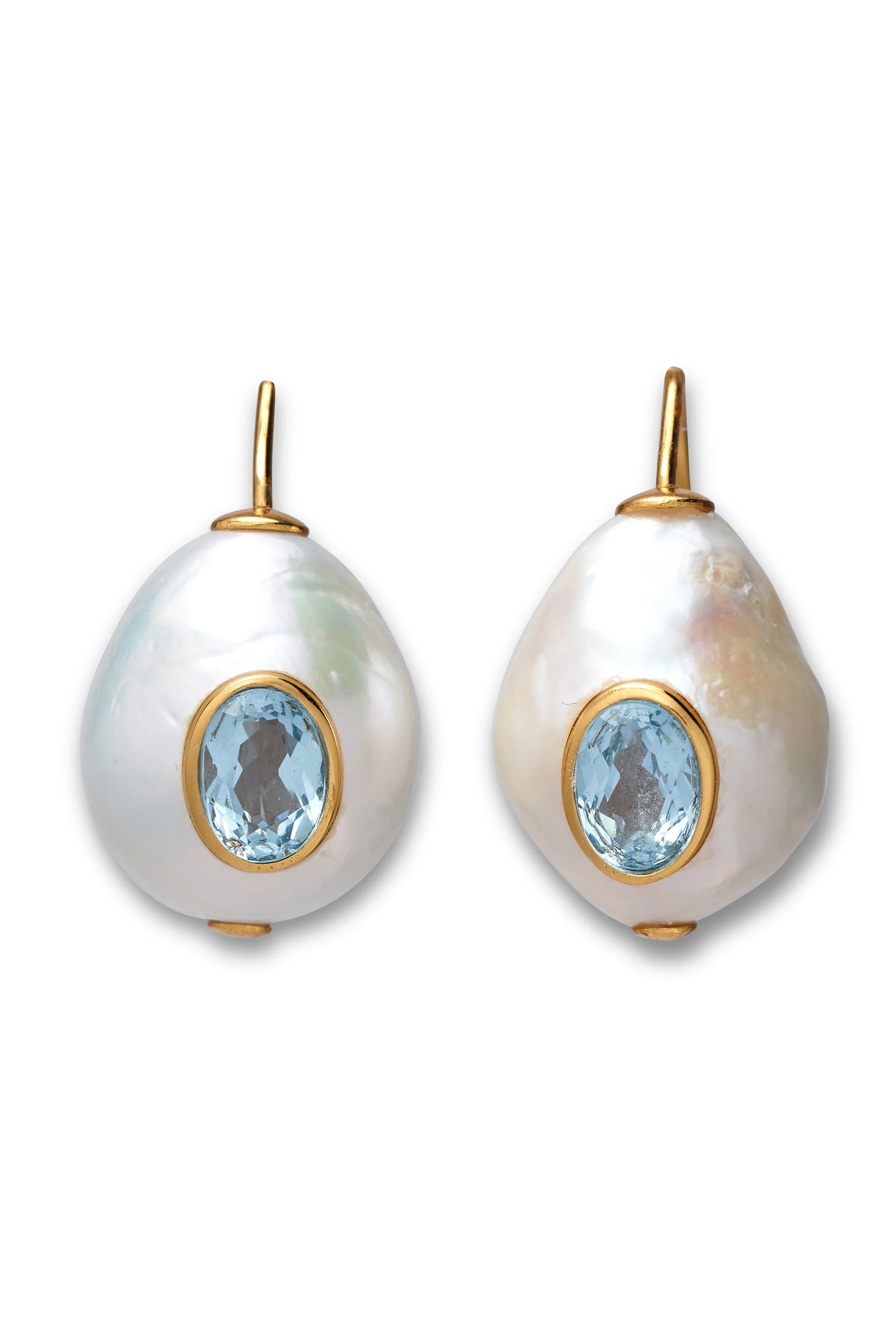 DETAILS AND INSIGHT Lizzie Fortunto pearl pable earrings in multi. Gold-plated sterling silver freshwater pearl, topaz Drop: 1" Style R23-E013
