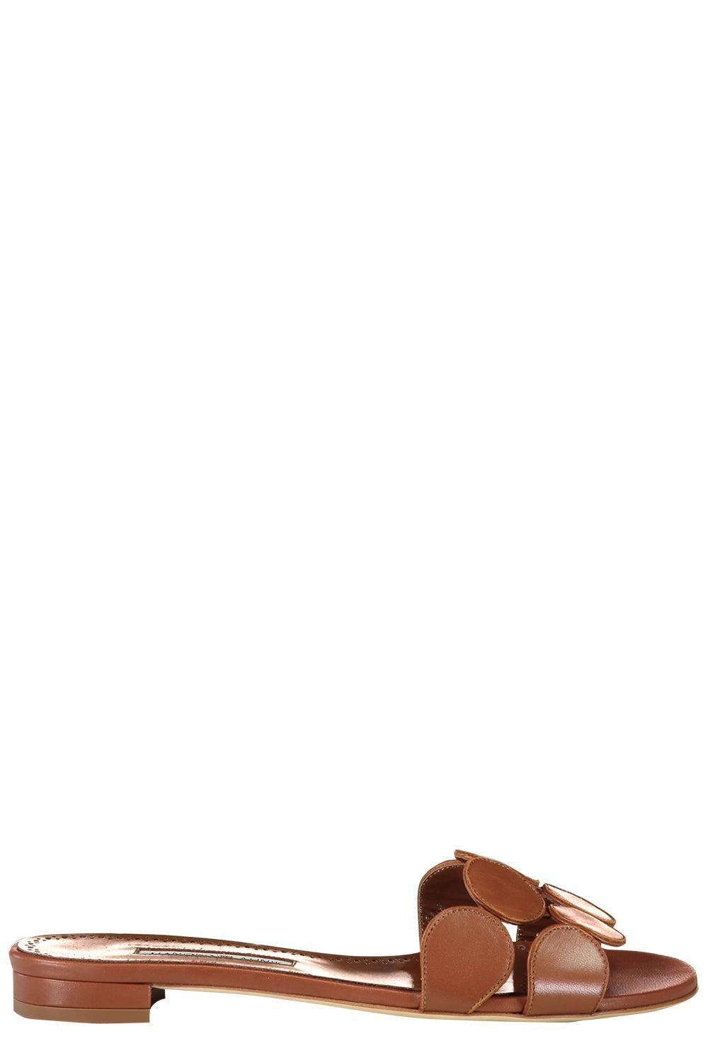 DETAILS AND INSIGHT Manolo Blahnik haribal flat in brown. Upper: 100% Lamb Nappa, Sole: 100% Calf Leather, Lining: 100% Kid Leather Made In Italy Style 424-1839-0006-2107