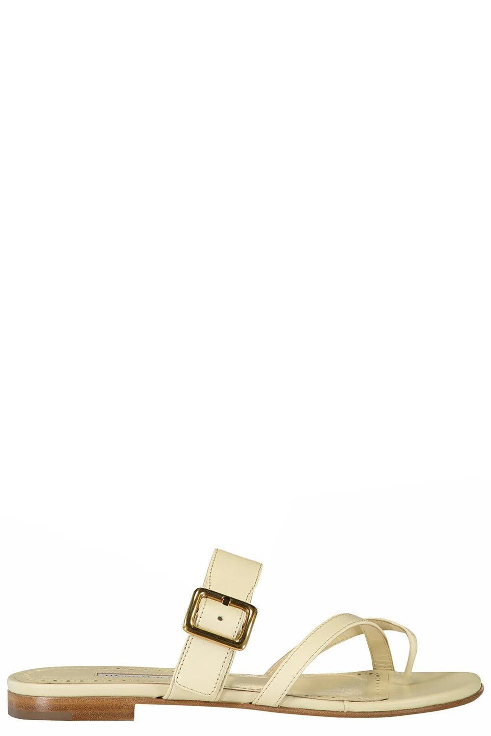 DETAILS AND INSIGHT Manolo Blahnik thalusa sandal in light cream. Upper: 100% lamb nappa, Sole: 100% calf leather, Lining: 100% kid leather Heel Height: 10mm Made in Italy Style 125-2815-0004-1304