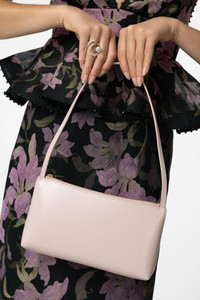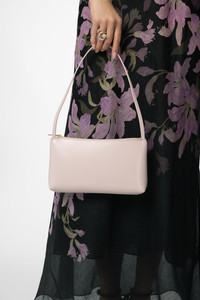 DETAILS AND INSIGHT Mansur Gavriel gaia shoulder bag in orchidea/desert. Width 13 x Height 10.2 x Depth 6.7" Fits Iphone 16 Pro Max 100% Italian Cow Leather Spot Clean Made In Italy Style WF23H128SP-ORCDS