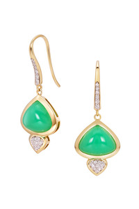 DETAILS AND INSIGHT Marina B chrysoprase diamond trisolina drop earrings in yellow gold. 18K Yellow Gold Cabochon Chrysoprase 8.2Cts, Pave Diamonds 0.12Cts Style EATM-09YDC