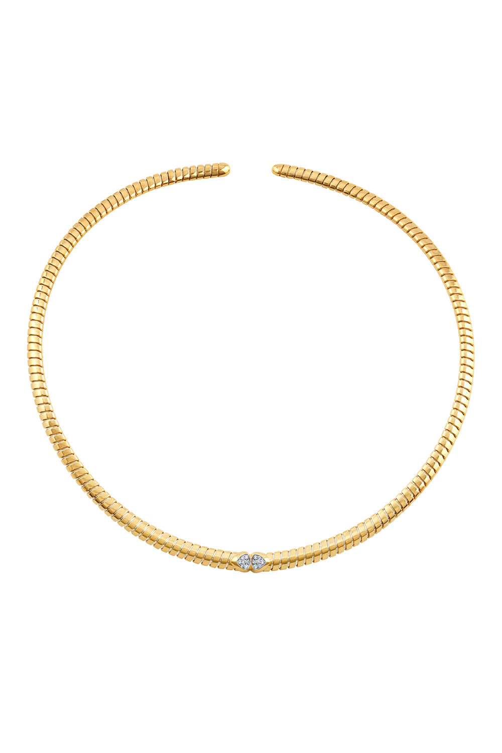 DETAILS AND INSIGHT Marina B diamond trisolina collar necklace in yellow gold. 18K Yellow Gold 0.08Ct Pave Diamonds 117Mm X 117Mm Style CHTM-01YDM