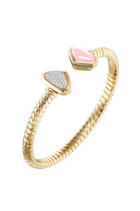DETAILS AND INSIGHT Marina B rose quartz diamond trisolina bracelet in yellow gold. 18K Yellow Gold Cabochon Rose Quartz 0.85Cts, Diamonds Pave 0.26Cts 56X47Mm Style BRTM-07YDRQM
