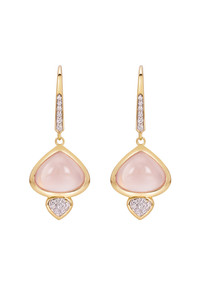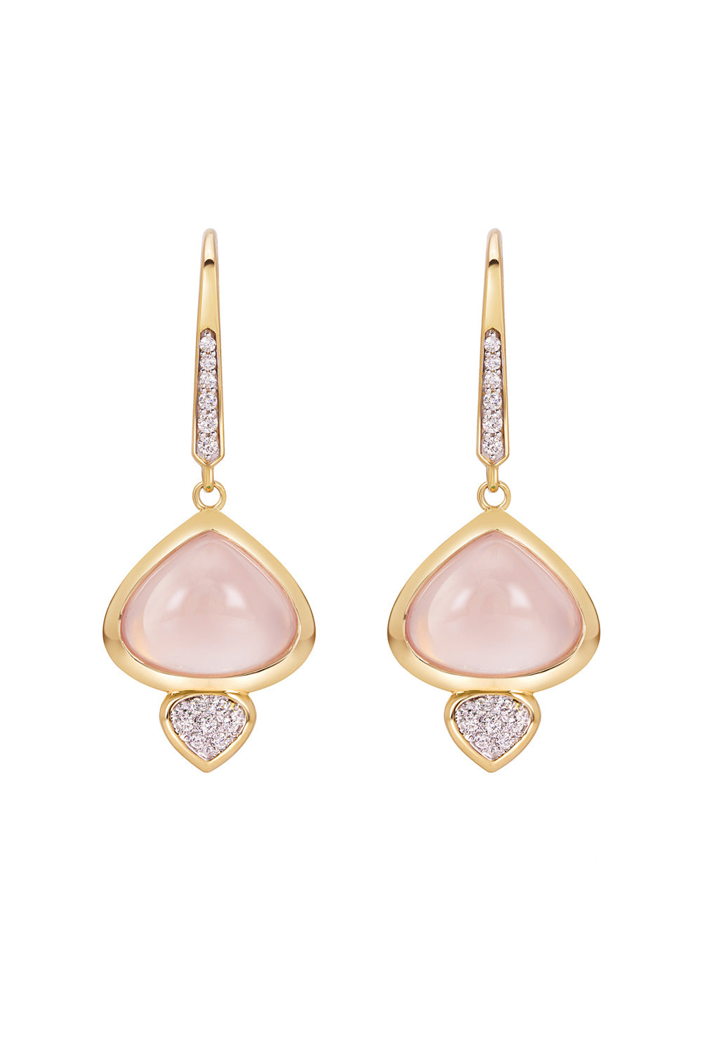 DETAILS AND INSIGHT Marina B rose quartz diamond trisolina drop earrings in yellow gold. 18K Yellow Gold Cabochon Rose Quartz 8.26 Ct, Pave Diamonds 0.12Cts Style EATM-09YDRQ