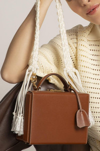 DETAILS AND INSIGHT Mark Cross Franzi calfskin leather Grace box bag with a top handle, detatchable leather strap, internal zip pocket, and gold tone push lock closure. 7" L x 4" D x 5.5" H 2" Handle Drop and 44" Strap Length Made in Italy Style W108447G-212