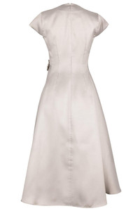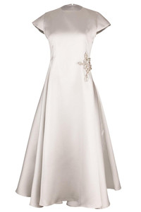 DETAILS AND INSIGHT Marques Almeida cap sleeve midi embellished dress in silver. 100% Polyester, Mikado Hand Wash Imported Style AW25DR0544MKSLV
