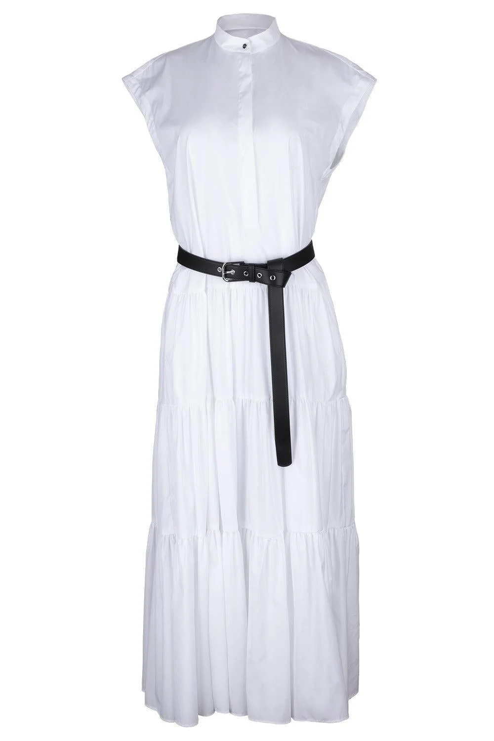 DETAILS AND INSIGHT Max Mara bairo maxi in optical white. Fabric 100% Cotton, Belt In Polyester With Polyurethane Coating Removable Belt Dry Clean Made In Ro Style 2516221102600-001