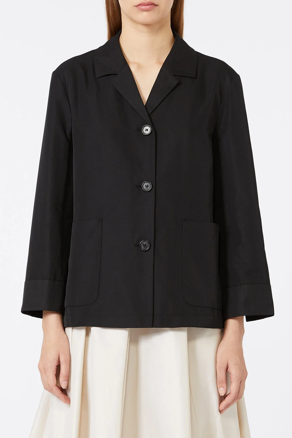 DETAILS AND INSIGHT Max Mara button front jacket in black. 60% Cotton, 40% Polyester Dry Clean Made In Ro Style 2619191031600-BLACK