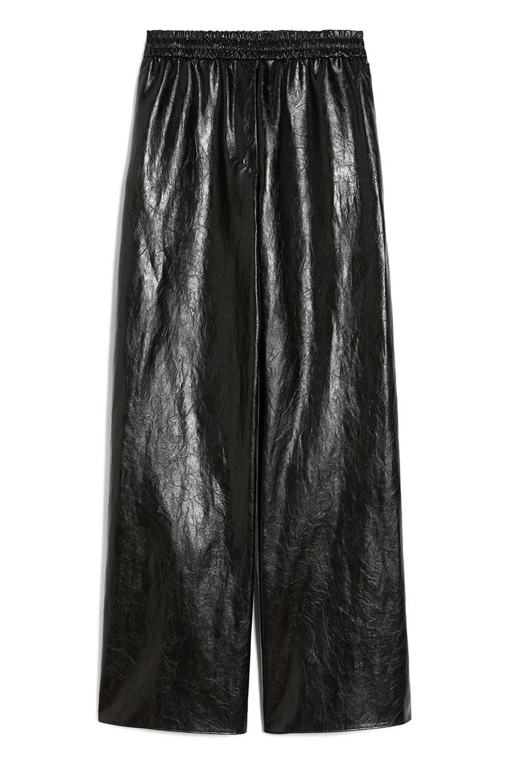 DETAILS AND INSIGHT Max Mara plutone trousers in black. 74% viscose, 15% polyester, 7% cotton, 4% metallic fiber; coating polyurethane Hand Wash Cold Imported Style 2515131061600-004