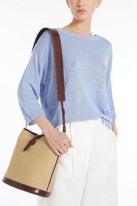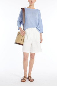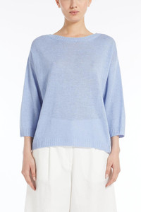 DETAILS AND INSIGHT Max Mara selz sweater in sky blue. 100% Flax Linen Dry Clean Made In Italy Style 2515361062600-013