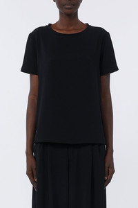 DETAILS AND INSIGHT Max Mara three quarter sleeve t-shirt in black. 75% Triacetate, 25% Polyester Dry Clean Made In Ro Pre-Order Ships by March 3 Style 2619161011600-BLACK