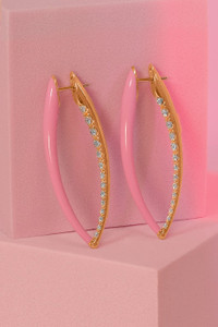 DETAILS AND INSIGHT Melissa Kaye large Cristina earring with diamonds and Marissa Pink enamel. Diamond (0.92ctw) Length: 42mm 18k Yellow Gold Style E1906MP-Y