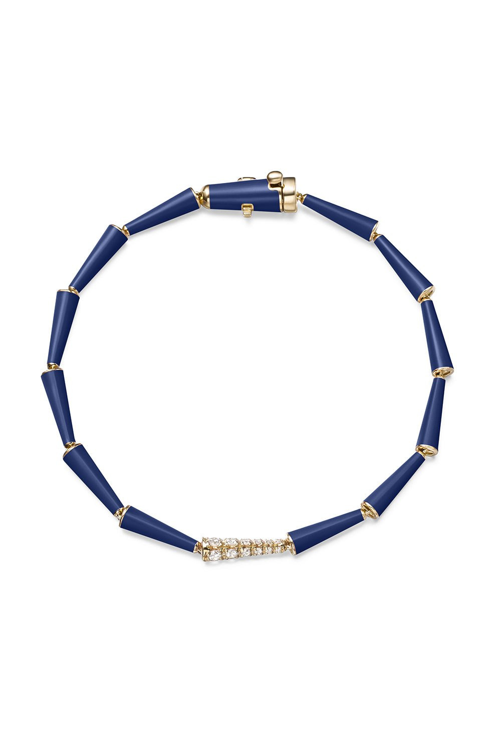 DETAILS AND INSIGHT Melissa Kaye navy lola partial diamond linked bracelet in yellow gold. 18K Yellow Gold, Enamel 0.34tcw Diamonds 6.5" L Style B1902N-Y