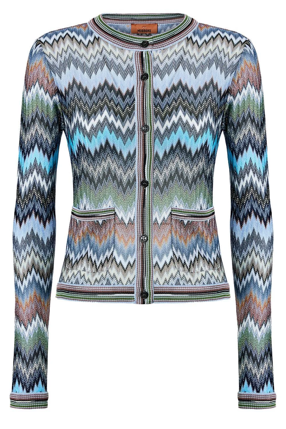 DETAILS AND INSIGHT Missoni buttoned cardigan in multicolor blue tones. 100%Vi Hand Wash Made In Italy Style DS26SM0C-S91RM