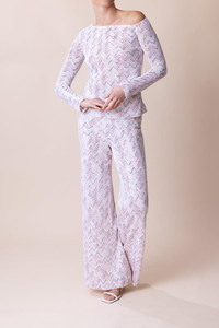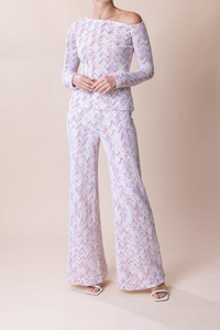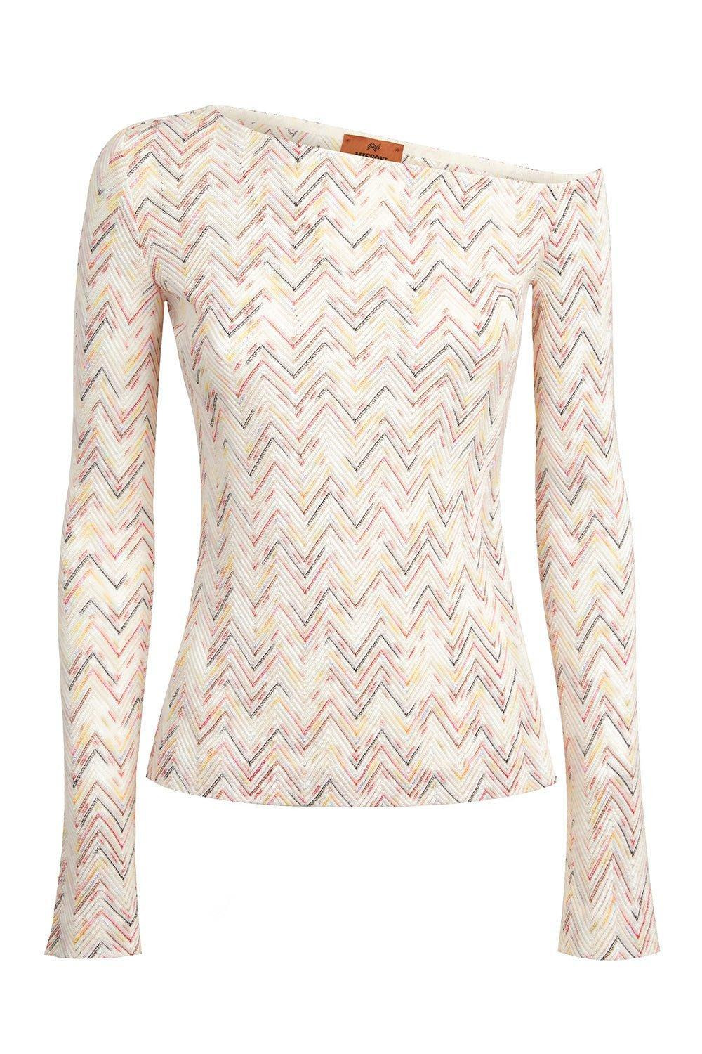 DETAILS AND INSIGHT Missoni off the shoulder sweater in multi/white. Wool Knit Dry Clean Imported Style DS24SN0N-SM965