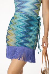 DETAILS AND INSIGHT Missoni short pareo in blue/green macro chevron. Polyester Dry Clean Made In Italy Style MC25WH00-S72NO