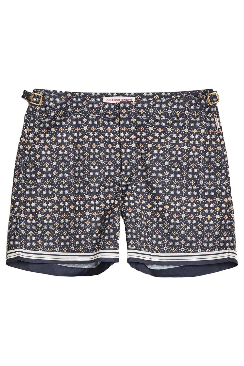 DETAILS AND INSIGHT Orlebar Brown bulldog swim short in night iris fiore. Main: 100% recycled polyester, Mesh Lining: 100% recycled polyester Machine Wash Cold Made in Portugal Style 278945-NIGHT IRIS