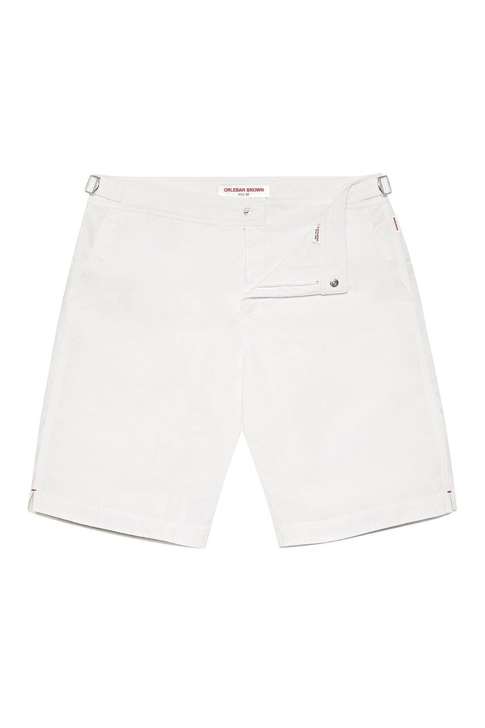 DETAILS AND INSIGHT Orlebar Brown dane swim shorts in white. Quick drying polyamide Machine Wash European sourced and manufactured Style 256961-WHT