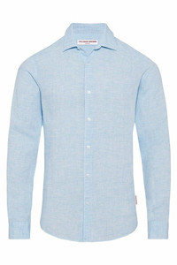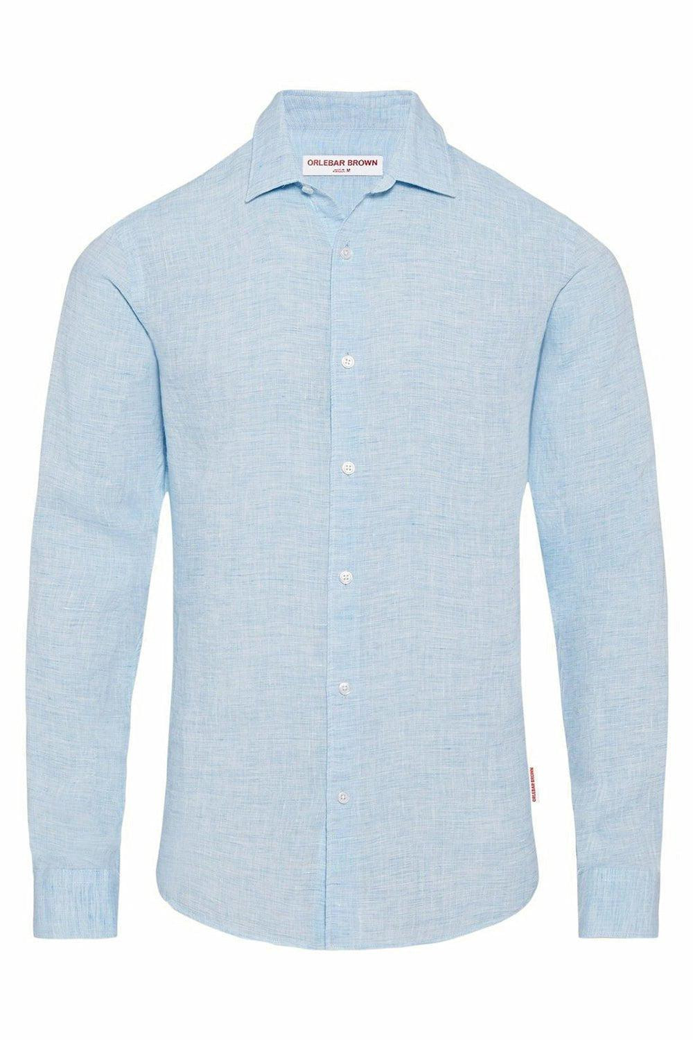 DETAILS AND INSIGHT Orlebar Brown giles linen shirt in pale blue\white. 100% Linen Machine Wash Cold Made in Portugal Style 275612-PALE BLUE/WHT