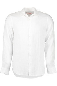 DETAILS AND INSIGHT Between tailored and relaxed, the Orlebar Brown standard-fit white Giles linen men's shirt is a failsafe option for versatile warm-weather dressing. They blend modern craftsmanship and traditional design for our signature-fit Giles shirt which can be teamed with shorts or chinos for all-day style. Precise tailoring and a flattering curved hem give this shirt a structured fit and slim silhouette. 100% cotton, 130 grm Gentle Machine Wash Manufactured in Europe Style 274659-62