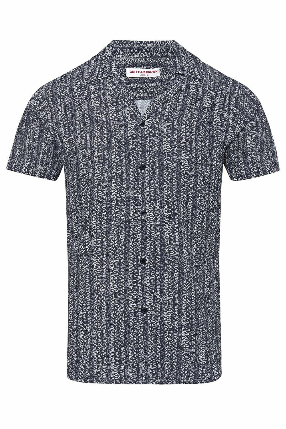 DETAILS AND INSIGHT Orlebar Brown travis shirt in midnight navy. 80% viscose, 20% linen Machine Wash Cold Made in Portugal Style 278749-MIDNIGHT NVY