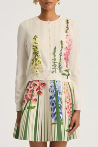 DETAILS AND INSIGHT Oscar De La Renta foxgloves embroidered cardigan in ivr. 100% Wool (Wv) Dry Clean Made In Italy Style 26RE145EAP-IVR