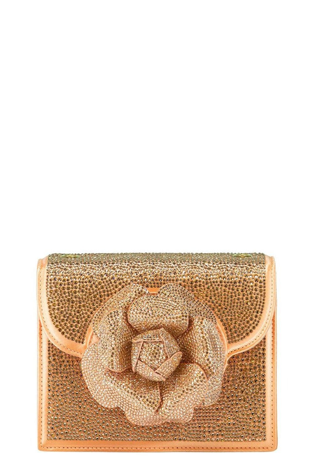 DETAILS AND INSIGHT Oscar De La Renta mini tro bag in crystal pave. 100% Satin 6.7"L x 5.1"H x 3"D Long Strap: 57.1cm Made in Italy Style 23RH2003CRT