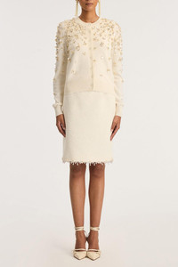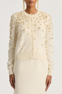 DETAILS AND INSIGHT Oscar De La Renta mother of pearl embroidered cardigan in ivory. 100% Wool (Wv) Dry Clean Made In Italy Ships by Feb 7 Style 26RE116ENS-IVR