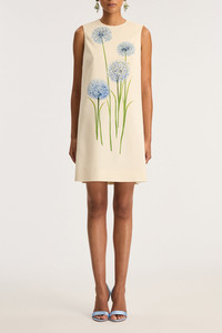 DETAILS AND INSIGHT Oscar De La Renta sleeveless alliums print wool dress in bwe. 96% Wool (Wv) 3% Elastane (Ea) 1% Polyamide (Pa); Lining: 100% Silk Dry Clean Made In Italy Ships by Feb 7 Style 26RN239ADW-BLUE/WHT