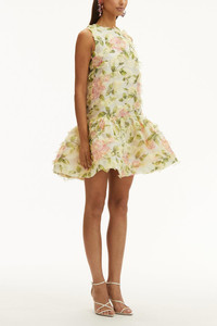 DETAILS AND INSIGHT Oscar De La Renta sleeveless english rose dress in pink/ivory. 86%Se 14%Pa Dry Clean Only Made In Italy Style 25SN672RPL-PKV