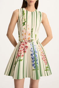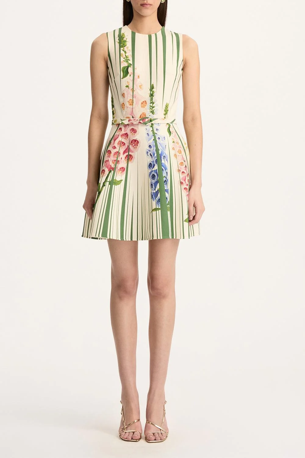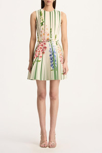 DETAILS AND INSIGHT Oscar De La Renta sleeveless pleated foxgloves dress in green multi. 96% Wool (Wv) 3% Elastane (Ea) 1% Polyamide (Pa) Dry Clean Made In Italy Ships by Feb 7 Style 26RN247TFO-GRM