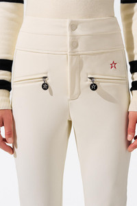 DETAILS AND INSIGHT Perfect Moment aurora flare ski pant in snow white. Shell : 80% nylon 20% spandex Backing : 94% polyester 6% spandex Machine wash at 30'c Do not bleach Cool Iron Do not dry clean Do not wringing Do not use fabric softener Made in China Style W3001070-1707