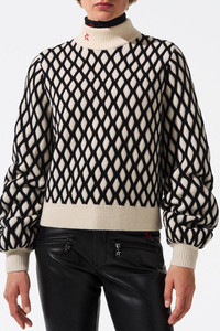 DETAILS AND INSIGHT Perfect Moment carving air sweater in black/snow white. Shell : 70% wool 30% cashmere Hand wash cold separately Do not bleach Lay flat to dry Cool iron if needed or dry clean Made in China Style W3001100-1703