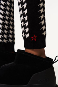DETAILS AND INSIGHT Perfect Moment houndstooth legging in black/snow white. 100% Extra-Fine Baby Merino Wool Hand Wash Cold Imported Style W3001264-2291