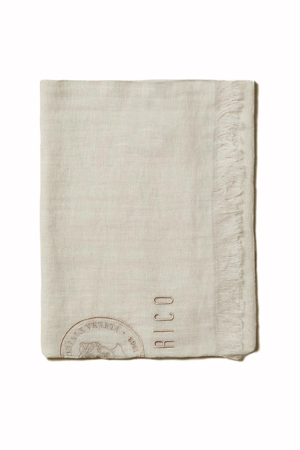 DETAILS AND INSIGHT Peserico embroidered stole scarf in amber beige. Linen Imported Style S31506C0R-CC440-945