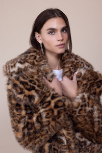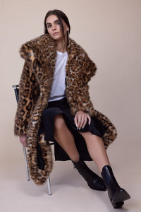 DETAILS AND INSIGHT Rabanne faux fur coat in leopard. Polyester 100% Dry Clean Imported Style 23HCOW023PO0328-LEOPARD BRUSH