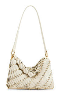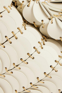 DETAILS AND INSIGHT Rabanne paco shoulder bag in cream. 90% CALF, 10% STEEL 17 x 28.5 x 3 CM Fits iPhone 16 pro max Made in Hungary Style 24HSS0486CLF214-M198