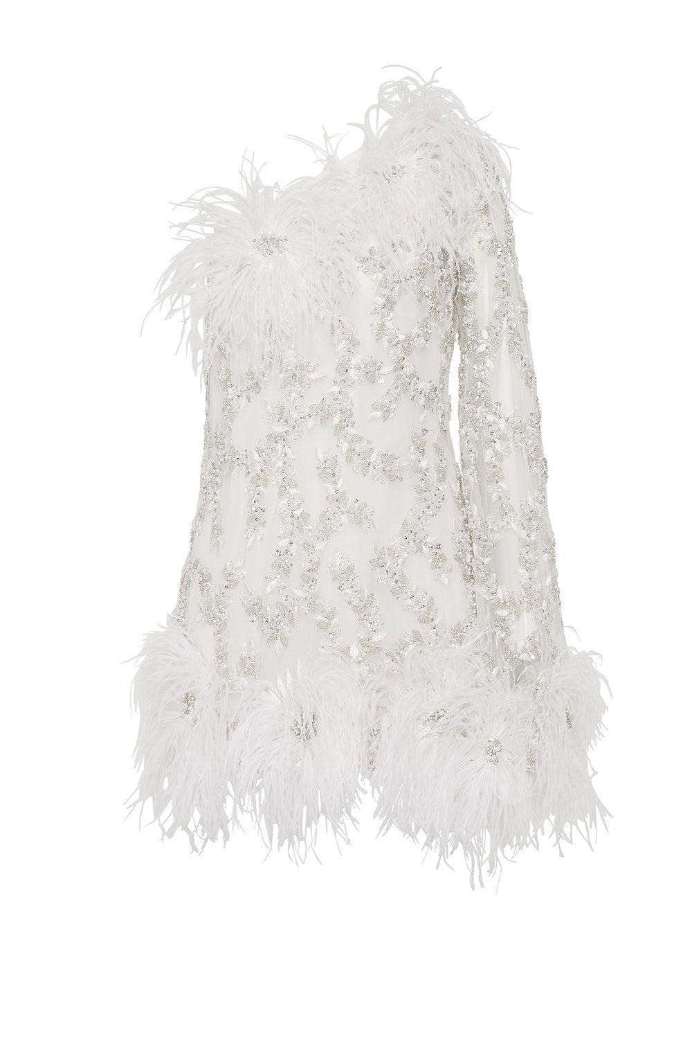 DETAILS AND INSIGHT Rachel Gilbert alby mini dress in ivory. 100% Nylon Tulle Dry Clean Made In India Ships by Oct 7 Style 25SSRG62210.IVY