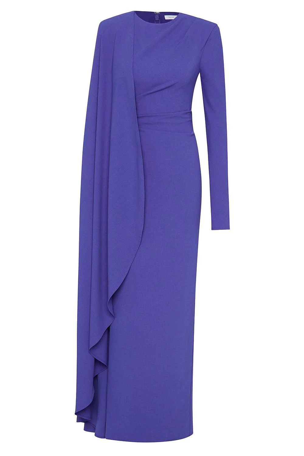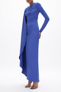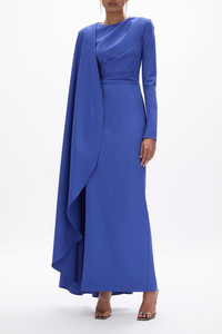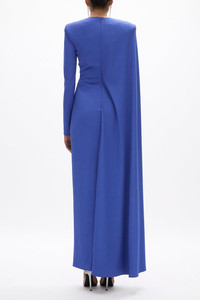DETAILS AND INSIGHT Rachel Gilbert dion cape gown in blue. Recycle Pl 96% Pu 4% Dry Clean Only Made In Cn Style 26RRG62335.BLU