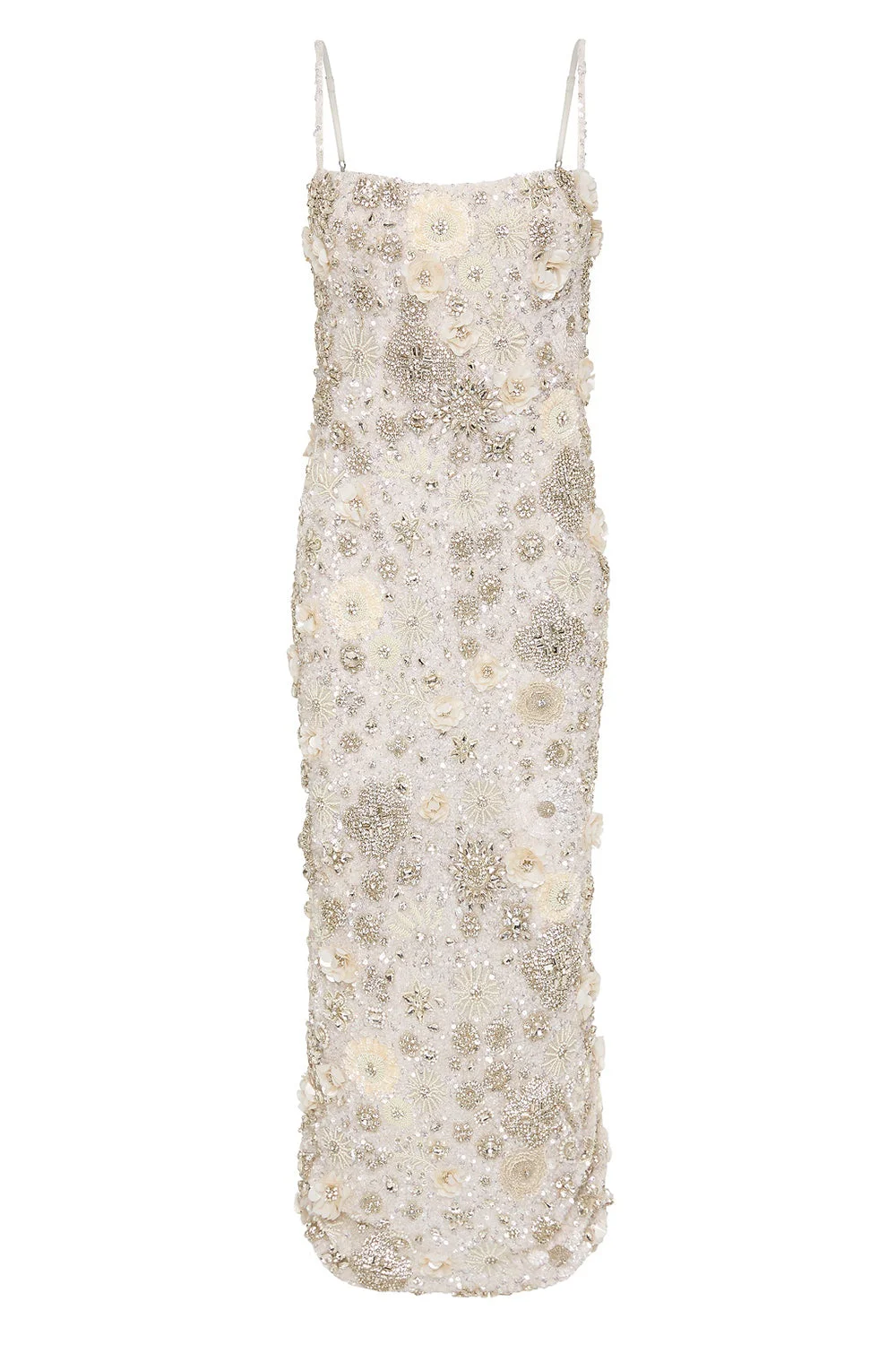 DETAILS AND INSIGHT Rachel Gilbert francesca gown in ivory. 100% Nylon Tulle Dry Clean Only Made In In Pre-Order Ships by Jan 7 Style 25PFRG61105.IVY