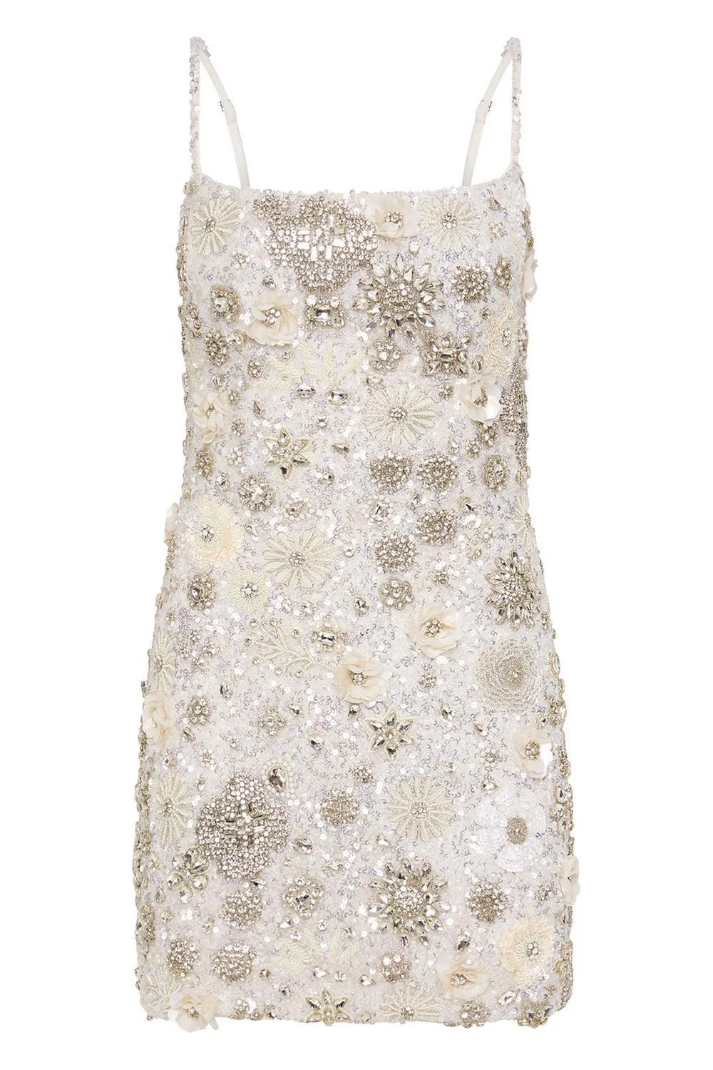 DETAILS AND INSIGHT Rachel Gilbert francesca mini dress in ivory. 100% Nylon Tulle Dry Clean Only Made In In Style 25PFRG62057.IVY