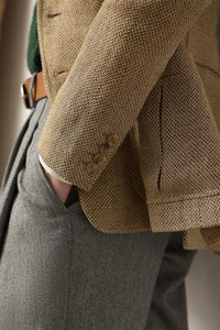 DETAILS AND INSIGHT Ralph Lauren ronan jacket in tan/cream. The Ronan Jacket Epitomizes Ralph Lauren’S Affinity For Both Comfort And Luxury, As It Melds A Lightweight Feel And Soft Construction With Highly Considered Tailoring, Including Slimming Waist Darts And Vents At The Back Side Seams. This Version Is Expertly Crafted With 100% Italian Linen Tweed Woven In A Barleycorn Weave, Creating A Fabric That Is Both Rustic And Sophisticated. It’S Timelessly Styled With Notch Lapels, Patch Pockets, And Genuine Horn Buttons Engraved With “Ralph Lauren.” 100% Linen, Under Collar: 100% Lamb Suede. Animal Type: Lamb, Ovis Aries. Animal Coo: Spain, Farmed. Half Lining: 95% Cupro 5% Elastane Dry Clean Made In Italy Style 290P00362001-30DO