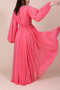DETAILS AND INSIGHT Reem Acra bubble sleeve gown in strawberry. Chiffon Dry Clean Made in USA Style 586-851-STRAWBERRY