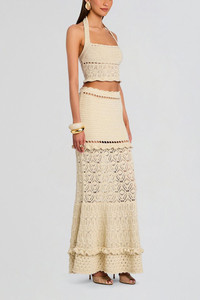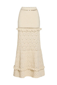 DETAILS AND INSIGHT Retrofete magdalena crochet skirt in ivory/gold. 85% Cotton10% Polyester5% Metallic Fibers Dry Clean Made In China Style R-SS25-11329-16-IVRGL